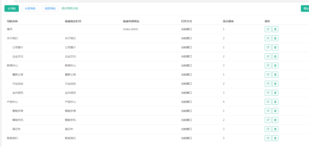 配置好后是这样的结构,结构与栏目一样,但是不冲突,这里的导航可以配置自己想显示的地址。链接外部地址也可 格式:(http://www.xxxx.com)